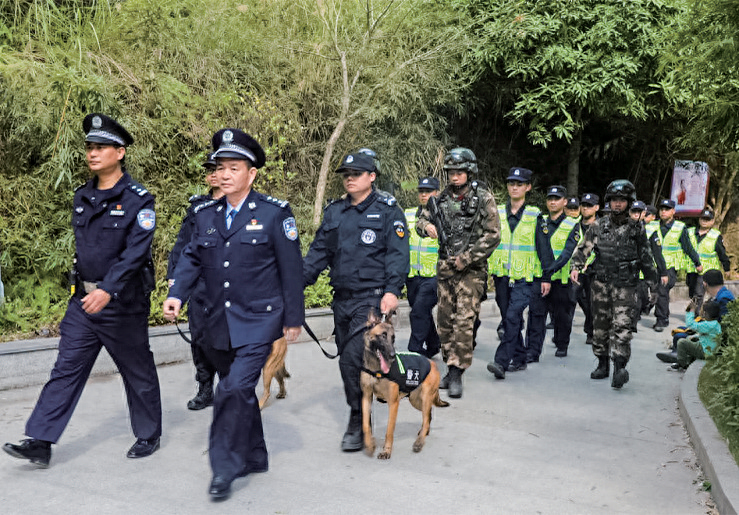 邱树华(右一)带领民警巡逻