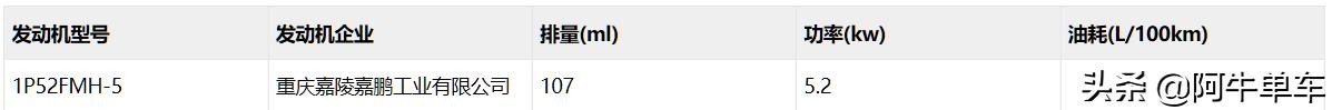 这款嘉陵110弯梁车搭载的嘉陵自己的发动机,单缸107cc,最大功率5.2kw。整备质量86kg,公示的最高速度为75km/h。
