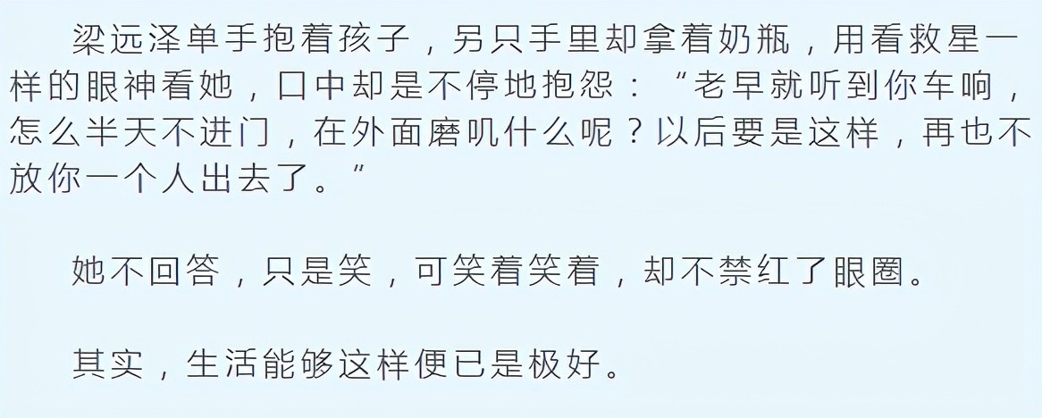 作为何妍的爱人,梁远泽其实是一个非常痴情且勇敢的人,在最后的结局中,何妍有了傅慎行的孩子,本意是不要这个孩子,但是梁远泽劝她生下来,作为他们俩的孩子抚养,看到这个结局的时候,虽然觉得很玛丽苏,很不切实际,但是也很感动。
