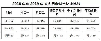 科目一和科目三安全文明常识考试合格率有所降低