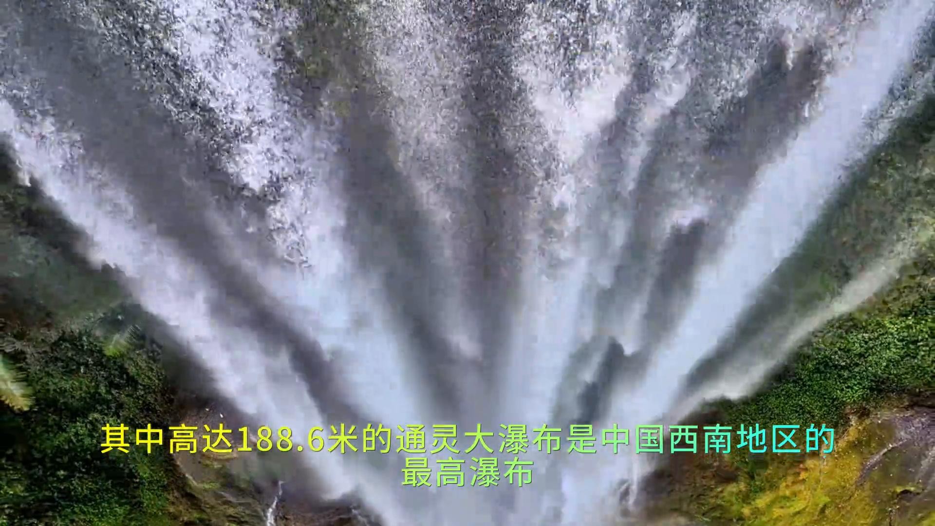 其中高达188.6米的通灵大瀑布是中国西南地区的最高瀑布。瀑布高悬山间,宛如一匹巨大白练飞流直下,漫天白雾飘散,阳光照射,美丽彩虹层出不穷。它的存在使得整个峡谷充满活力和灵性。深入其间,四周崖壁峻峭耸立、气势壮观、洞穴深潭隐匿交融。在其中,植被苍翠、古树老藤荫荫,山涧溪流清澈潺潺、蜿蜒曲折,可谓步步奇景、造化万千。