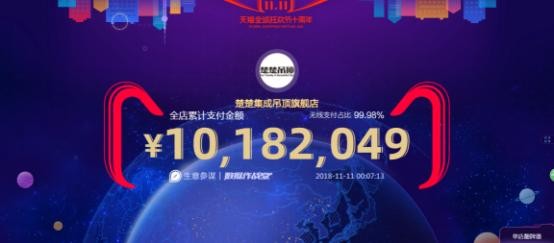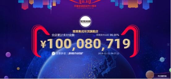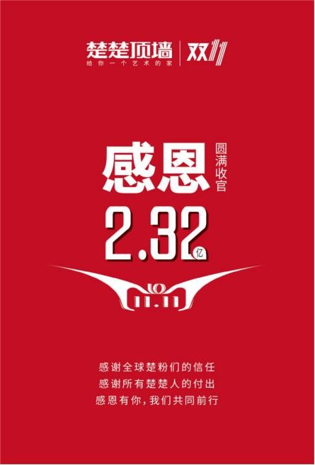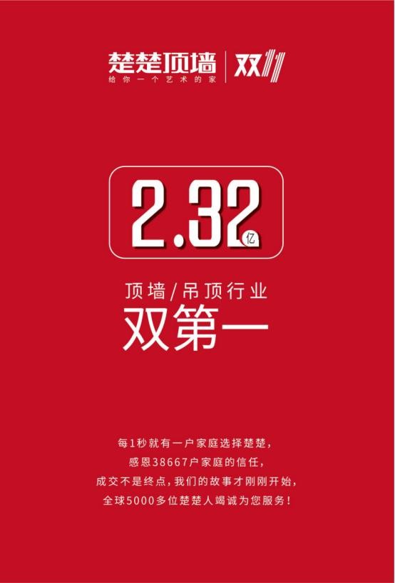 楚楚双十一创2.32亿销售纪录,顶墙、吊顶双第一!全屋定制第五!