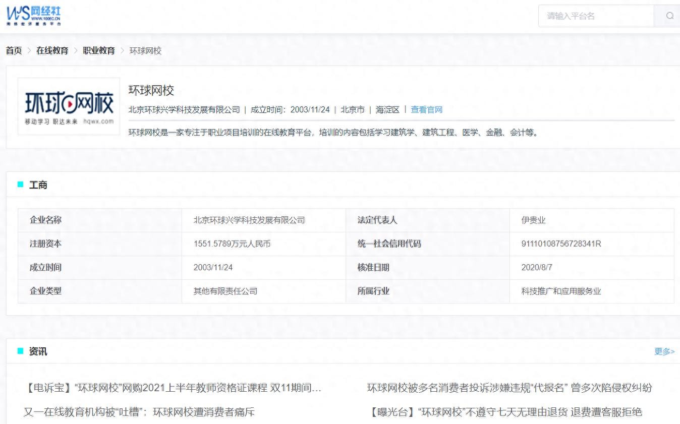 据网经社“企业库”了解,“环球网校”隶属于北京环球兴学科技发展有限公司,伊贵业为公司法定代表人,是一家专注于职业项目培训的在线教育平台,培训的内容包括学习建筑学、建筑工程、医学、金融、会计等。
