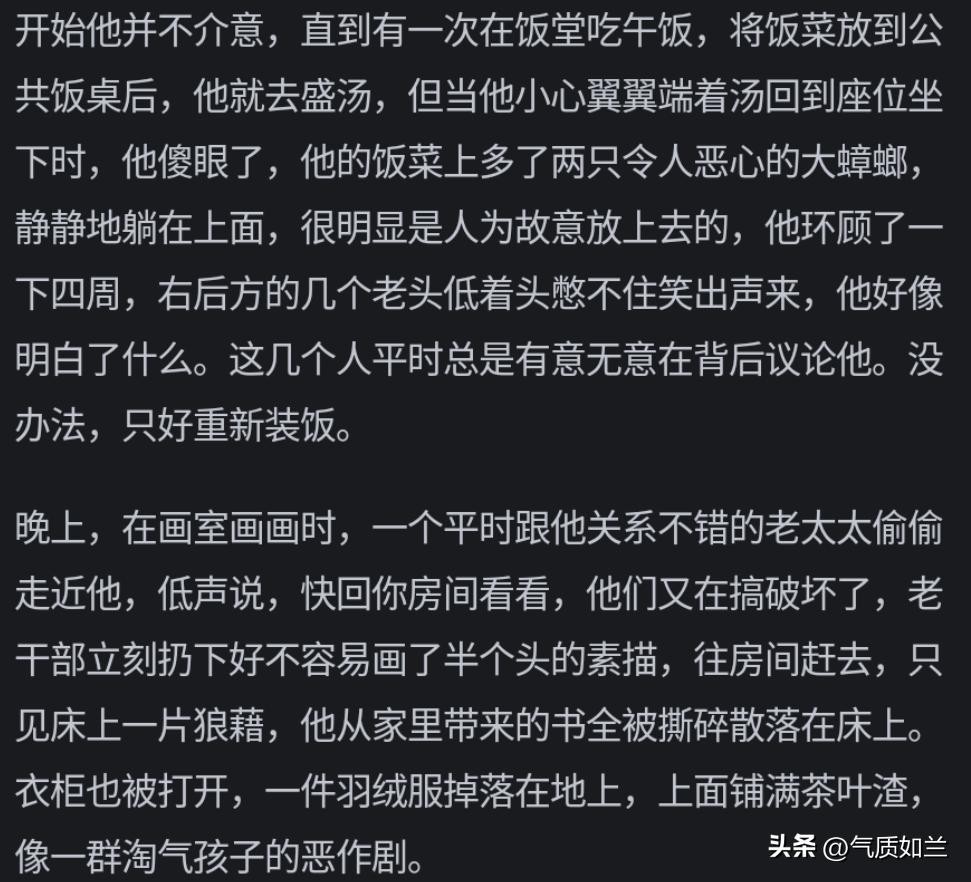 这个观点我第一次看到,非常有道理。这可不就是集体生活吗?集体生活特别容易出坏草,因为整个集体是对内的,满肚子坏水的人也只能对内使坏。