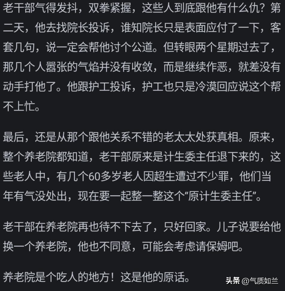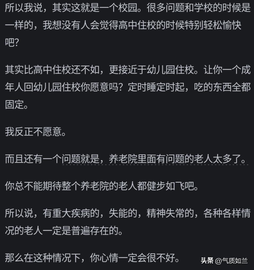 哎,说到底,养老院不是家,老人自然不愿意去。但这也反映出咱们社会在养老方面的不足。看完网友评论,你咋看呢?欢迎评论区留言,一起探讨养老院那些事儿!