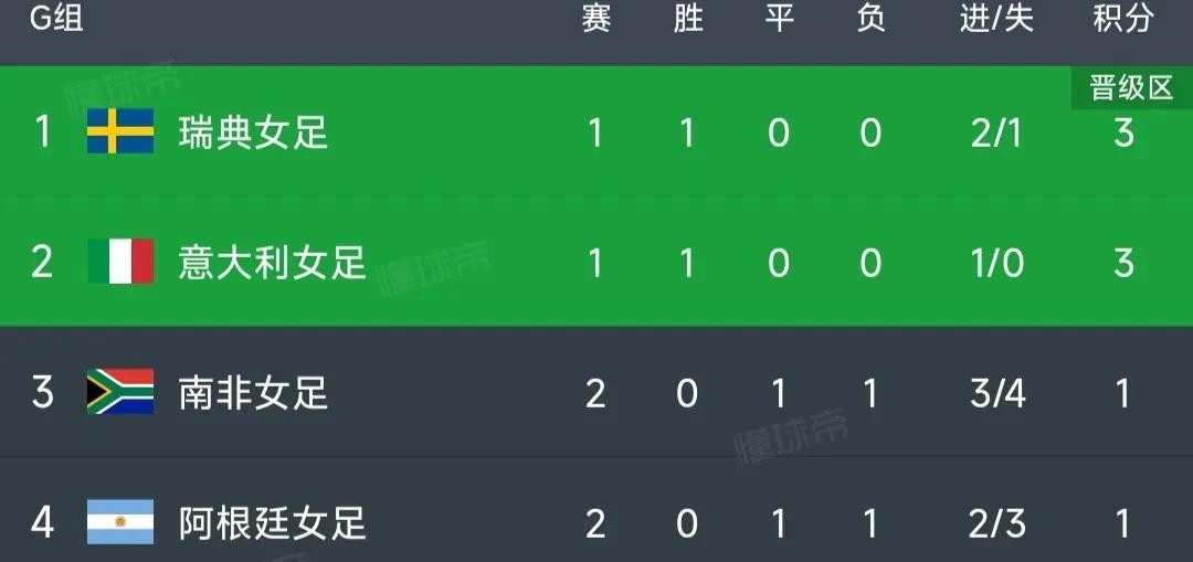 女足世界杯最新积分榜:中国女足1-0暂居第2,英格兰两连胜第1!