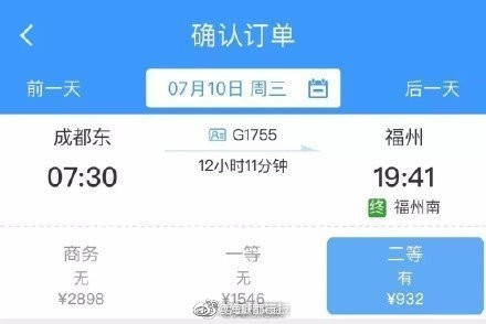 【7月10日,成都首开至福州高铁!】7月10日零时起,铁路开始实行新的运行图。此次调图后,成都将首开到福州的高铁,全程开行12个多小时,比此前动车节约近4个小时。(via 成都发布)