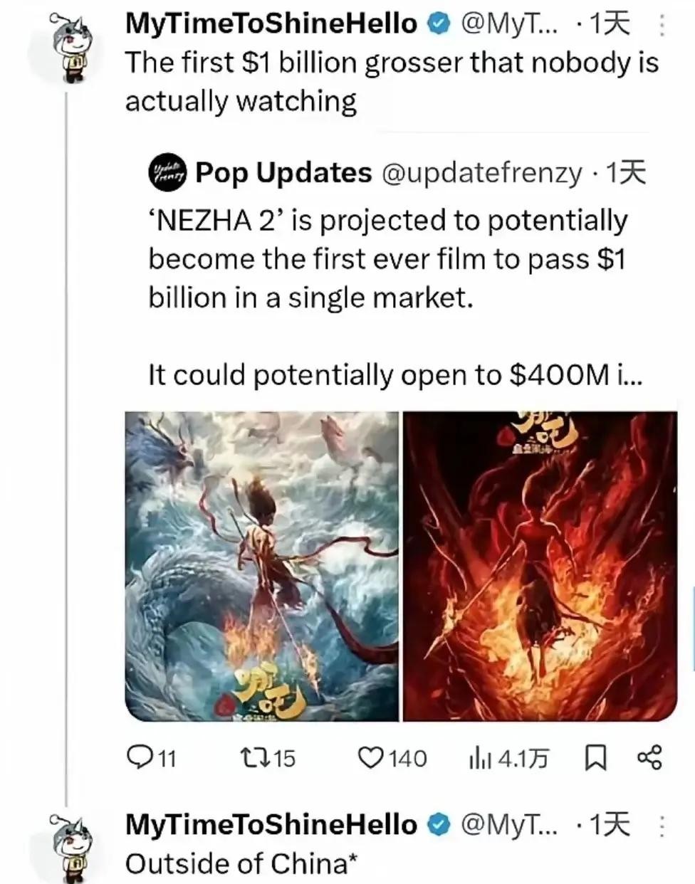 不过,《哪吒2》也有自己的问题。比如有些情节有点刻意,节奏上有点松散。电影里的笑点和泪点,老外很难理解。这说明,《哪吒2》虽然在国内很牛,但要走向国际,还得在文化表达上多下功夫。