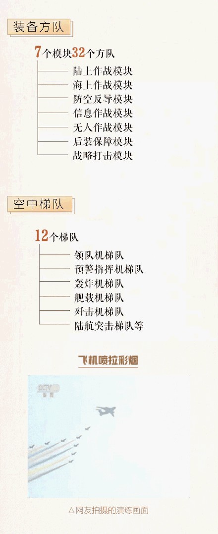 装备方队编陆上作战、海上作战、防空反导、信息作战、无人作战、后装保障、战略打击等7个模块32个方队。