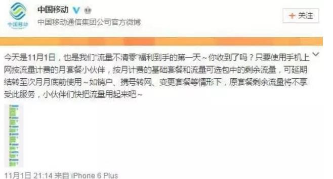 发微博指责中国移动偷跑流量……