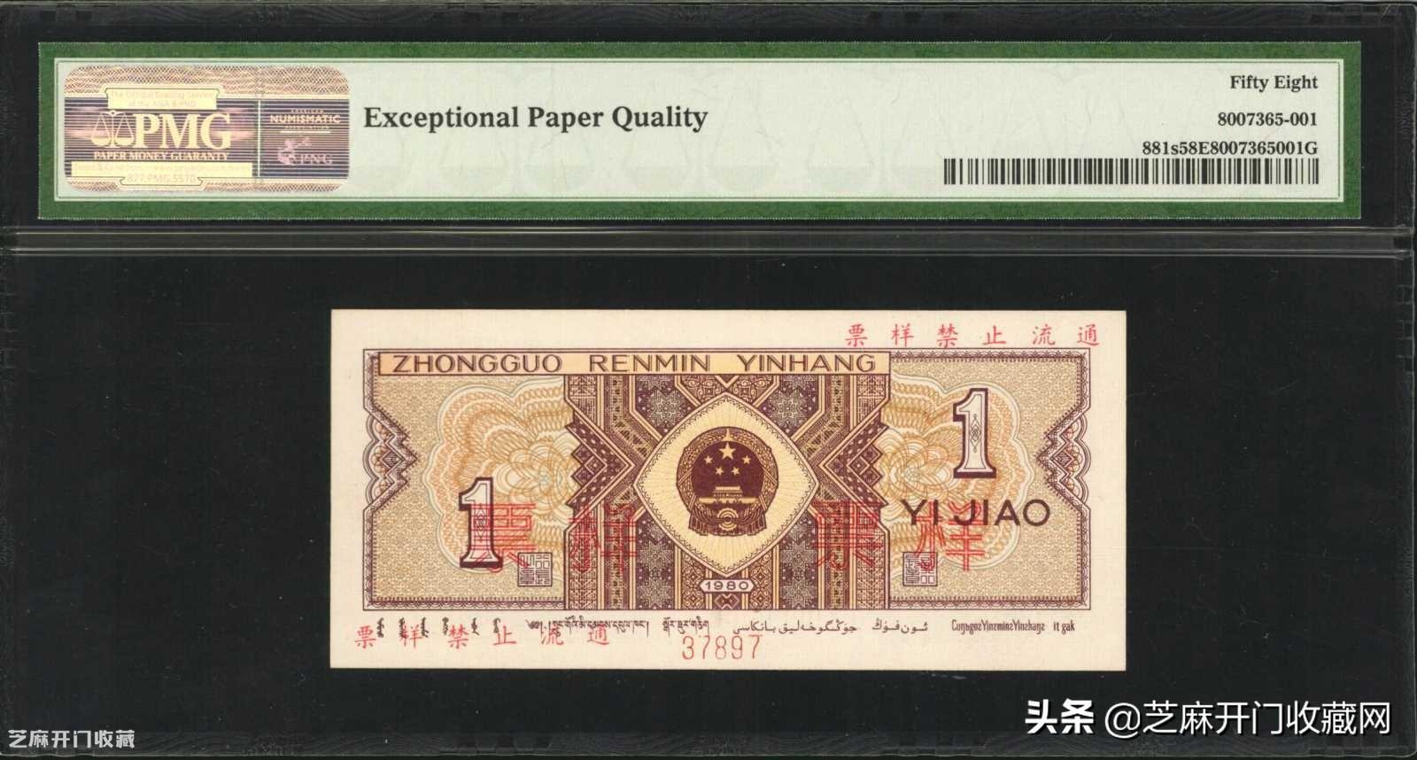 2:1980年第四版人民币一角。样张,估价: USD 100 - 200,成交价格: USD 630