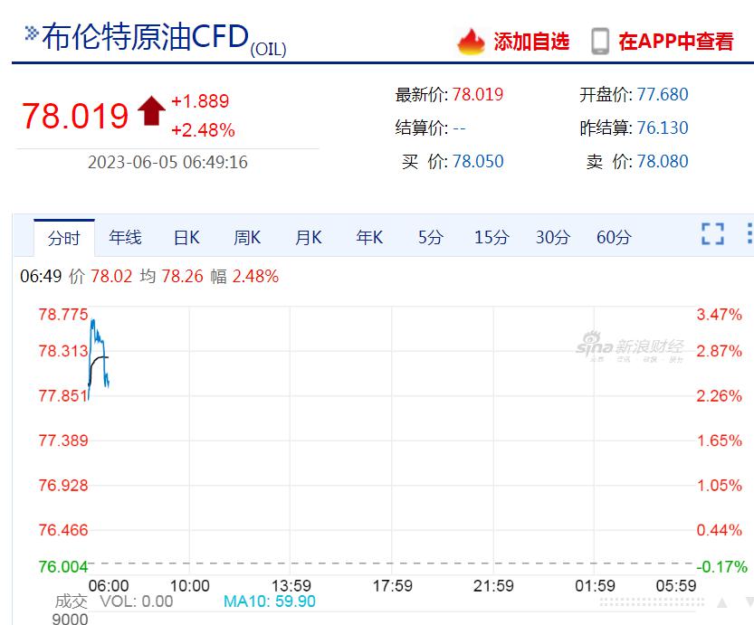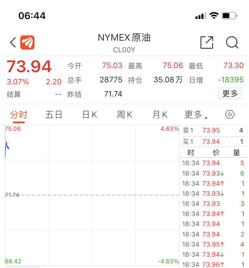 受上述消息刺激,WTI 原油、布伦特原油周一均高开。截至发稿,WTI 原油涨 3.09%,报 73.95 美元 / 桶;布伦特原油涨 2.56%,报 78.082 美元 / 桶。