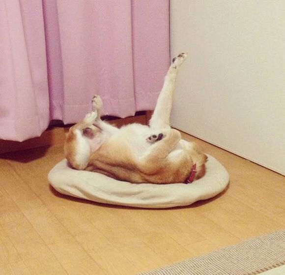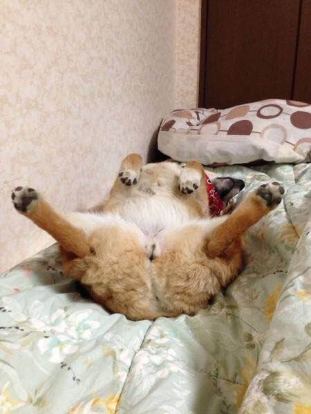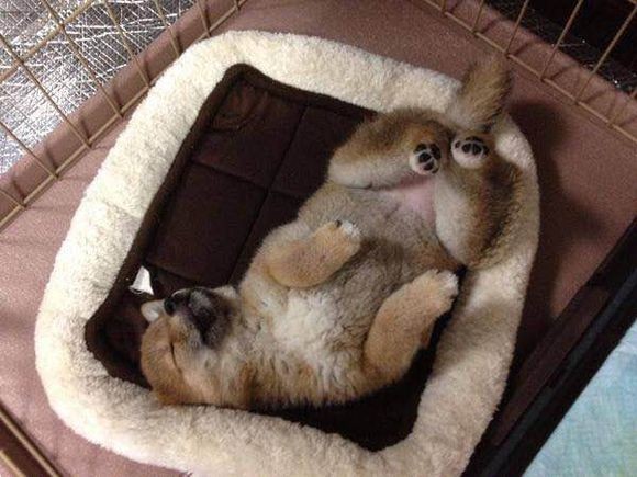 最搞笑的就是它的睡姿,不过这也是所有狗狗的通性。毫无节操,毫无下限的睡姿。羞羞~