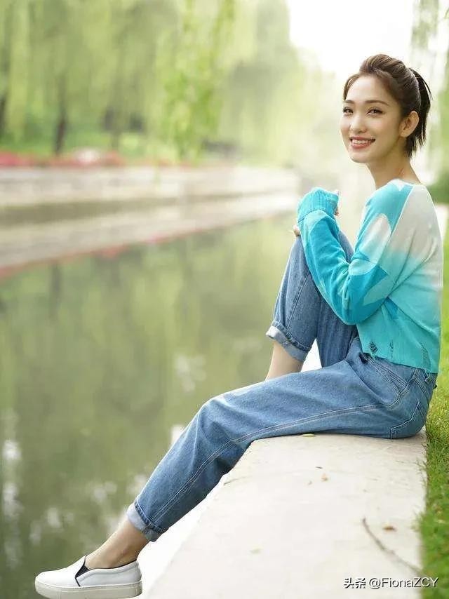 生活中的她,也是个扎马尾,穿牛仔裤的年轻女孩子。