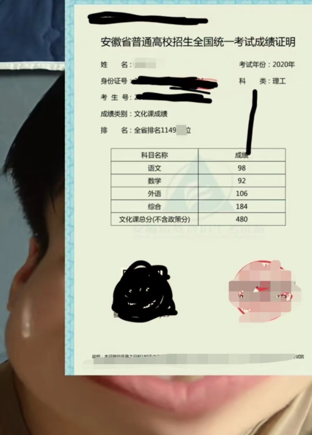 而让博主感到有趣的是,当时复读第一天,班主任让他们把复读目标分数写下来,他当时写的就是480分,结果考下来,居然也是480,一分不多,一分不少。
