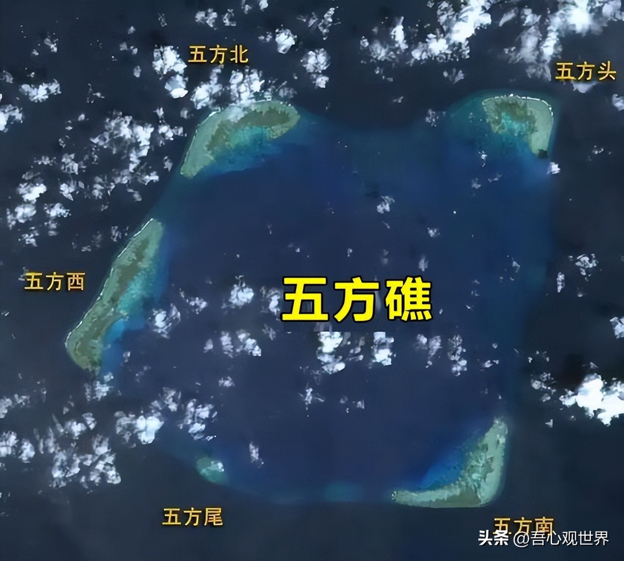 五方礁是南沙群岛东北部一珊瑚环礁,主要由五方头、五方南、五方尾、五方西、五方北等礁石组成,礁体平均直径约10.5公里,面积约80平方公里,礁坪200-600m不等,累计干出面积约6.3平方公里,目前该环礁仍为无人礁。