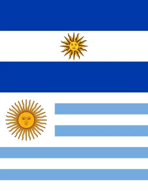 乌拉圭的9条蓝白相间长条就很简单了,它表示国家省的数目,当然,如果说两国国旗最大的不同点,就是国旗左上角的标志,乌拉圭是人脸太阳,它和阿根廷国旗中的人脸太阳非常的像,这是因为在历史上,两国曾经是一个国家,通过这样的设计,也表示他们历史上的关系,而希腊国旗上的白色十字,象征对东正教的信仰。