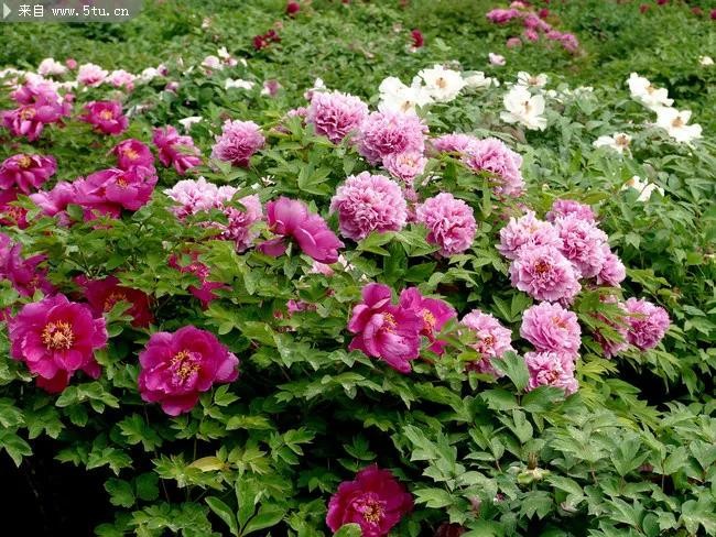 牡丹,学名:Paeonia suffruticosa Andr.,芍药科、芍药属植物,为多年生落叶灌木。叶二回三出复叶,偶尔近枝顶的叶为3小叶。顶生小叶宽卵形,表面绿色,无毛,背面淡绿色,有时具白粉,侧生小叶狭卵形或长圆状卵形,叶柄长5-11厘米,和叶轴均无毛。花单生枝顶,苞片5,长椭圆形;萼片5,绿色,宽卵形,花瓣5或为重瓣,玫瑰色、红紫色、粉红色至白色,通常变异很大,倒卵形,顶端呈不规则的波状。花色泽艳丽,玉笑珠香,风流潇洒,富丽堂皇,素有“花中之王”的美誉。在栽培类型中,主要根据花的颜色,可分成上百个品种。牡丹品种繁多,色泽亦多,以黄、绿、肉红、深红、银红为上品,尤其黄、绿为贵。牡丹花大而香,故又有“国色天香”之称。