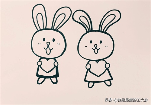 第四步:两只小兔子拿着小爱心。