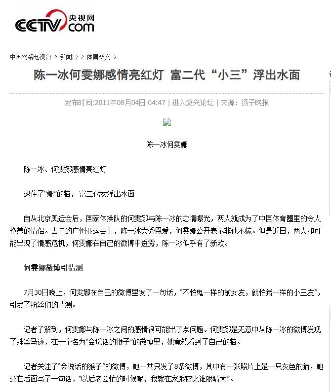 陈一冰何雯娜感情亮红灯 富二代“小三”浮出水面|央视网