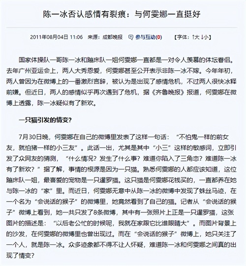 陈一冰否认感情有裂痕:与何雯娜一直挺好|成都晚报