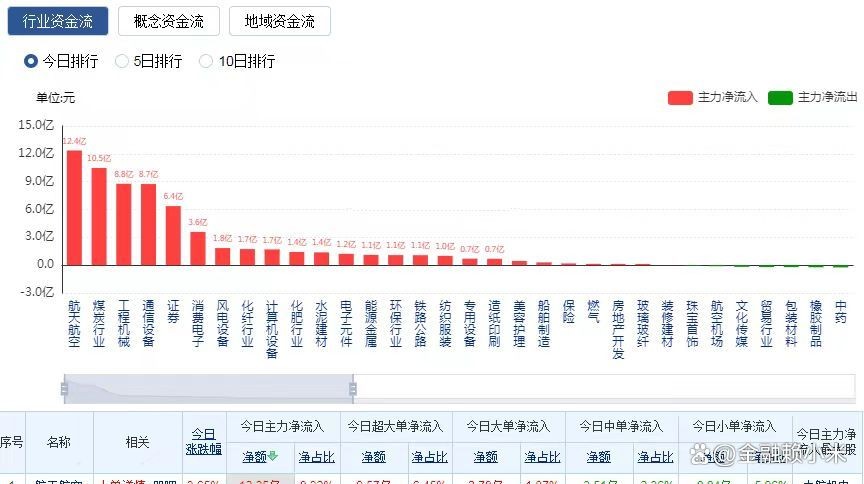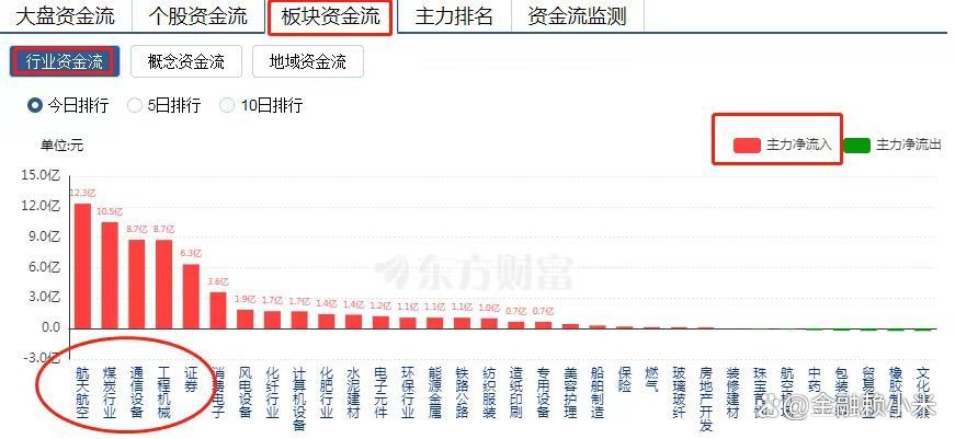 第一步:找出当日主力资金净流入最多的前五名板块。
