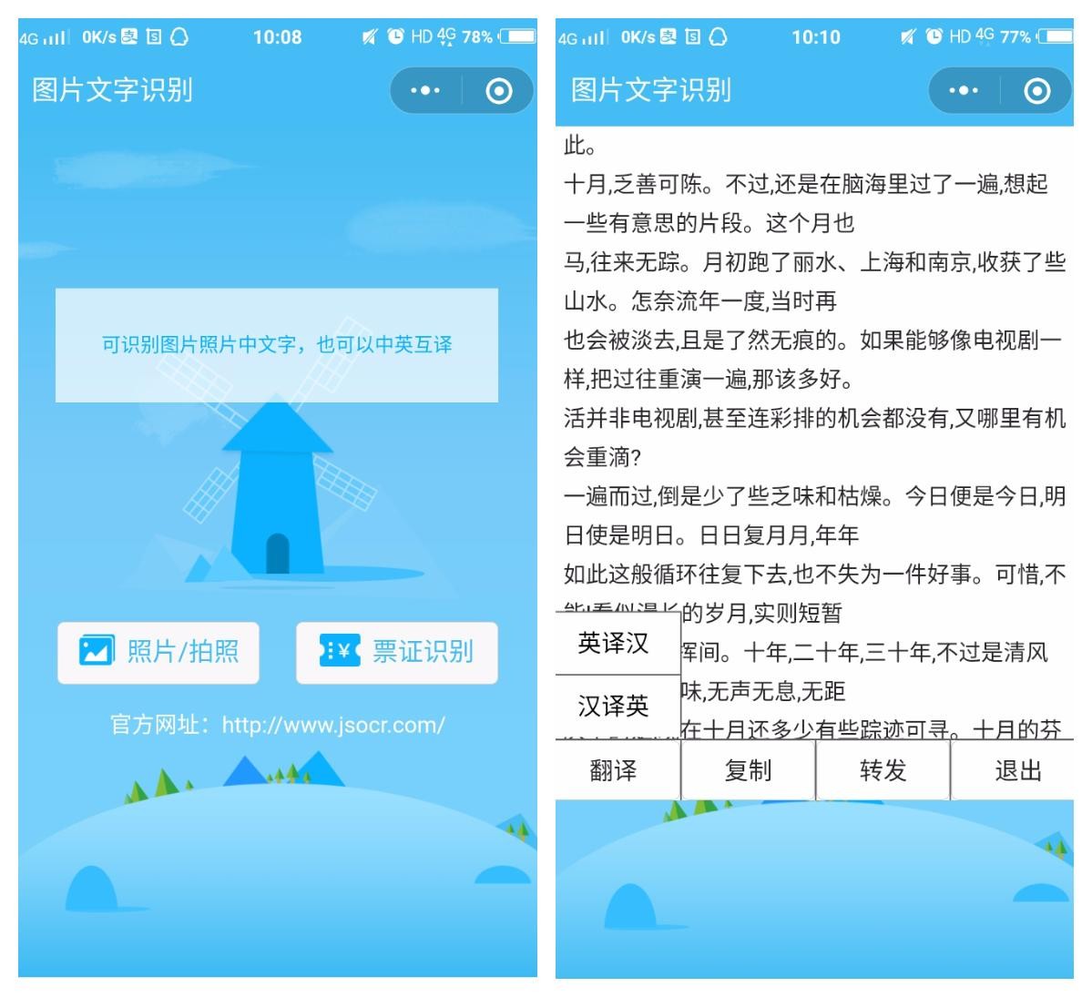 拍照识别文字不仅识别度高,还能将识别出来的文字进行翻译,也能对票证进行识别,好用的小程序不要错过哦!