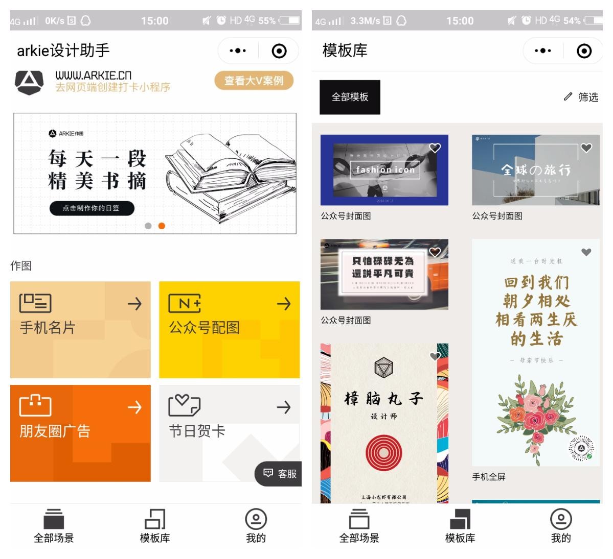 只要素材、文字和图片就可以进行设计你的公众号配图、朋友圈海报、名片等多种图片,有兴趣的可以去实际运用一下!