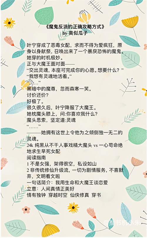 短评:这本看简介挺好玩的,人设也挺好玩的,就是那种无所畏惧大魔王×怕死背后阴人小跟班。最喜欢的就是他们的感情戏啦,一点不含糊,女主意识到了之后直接搞直球哇,把大魔王都干蒙了还有点娇羞哈哈,感觉是本书高潮。有时候他们两个的对话,就女主说:“烟火真好看”