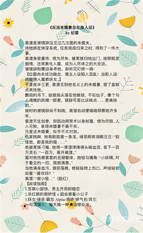 短评:这本也超级好看,女主本来要死掉的后来去快穿做任务换取回来的机会,然后因为系统故障会不停换人设的时候很好玩,男主就是那种害羞正直的小可怜,真的好害羞好可爱。男主真的偷偷喜欢女主好多年好多年,结果女主小时候傻憨憨地以为男主要和她竞争哈哈。后面解释了女主为什么能去做任务回来,看到这里我就感觉有点小虐,原世界线的男主太惨了,不过好在结局是好的。