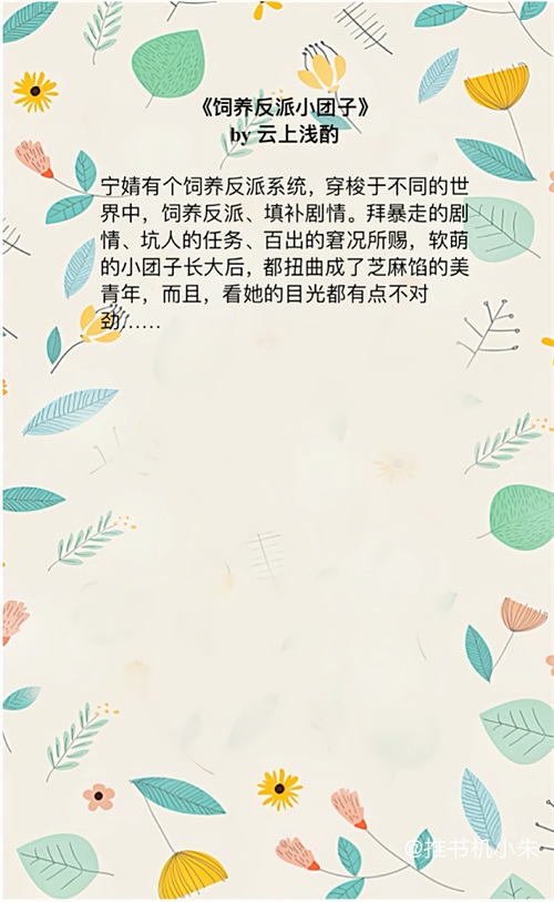 短评:这本还可以,文荒的时候可以看看。前期就是养成啦,女主辛辛苦苦把戒备心很重的小反派养成乖小孩(表面),在在期间还和原书男主有点牵扯,当时觉得男主和原书男主在女主面前一个装的比一个乖的时候觉得很好玩。后面女主会突然消失五六年然后换马甲回来,这里感觉有点小虐,男主后面是真病娇啊。但是我很喜欢女主确定感情后就采取行动不磨唧,也不作,然后在平行时空里没人陪着长大的坏小孩最后也有人陪我就很喜欢啦。