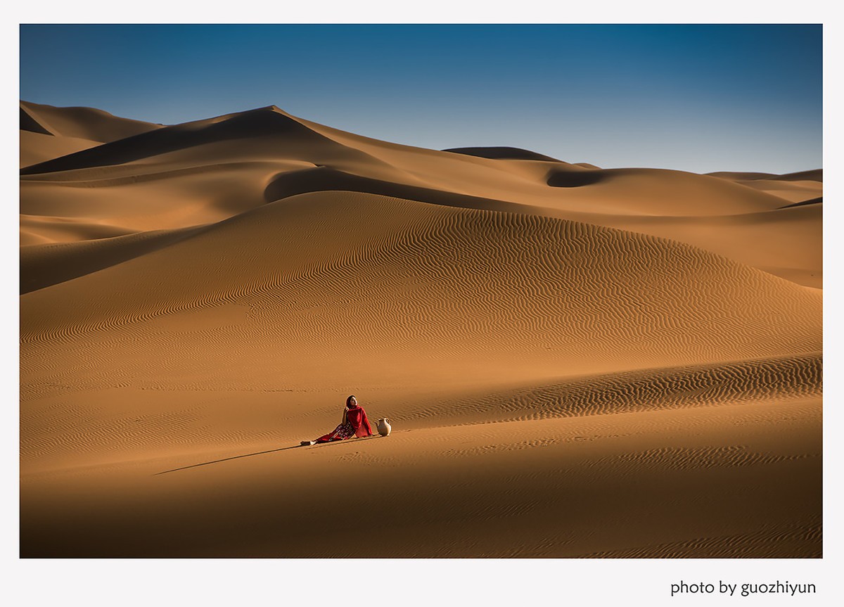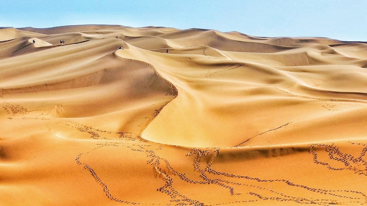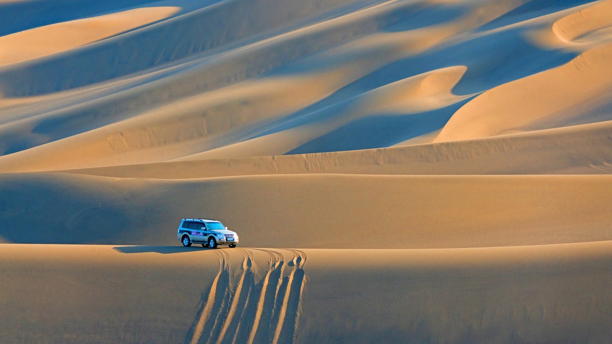 “库木塔格”的维吾尔语意为“沙山”。库木塔格沙漠主要分布为复合型沙垄、新月型沙垄、线性沙垄,这里有格状沙丘、新月形沙丘、金字塔形沙丘、线状沙丘等不同的沙丘类型,另外还有世界上第一无二的的羽毛状沙丘。沙丘轮廓清晰、层次分明,站在沙漠深处沙山之巅峰,可以静观大漠日出的绚丽,目睹夕阳染沙的缤纷,不禁赞叹这般“大漠孤烟直,长河落日圆”的壮丽景观。