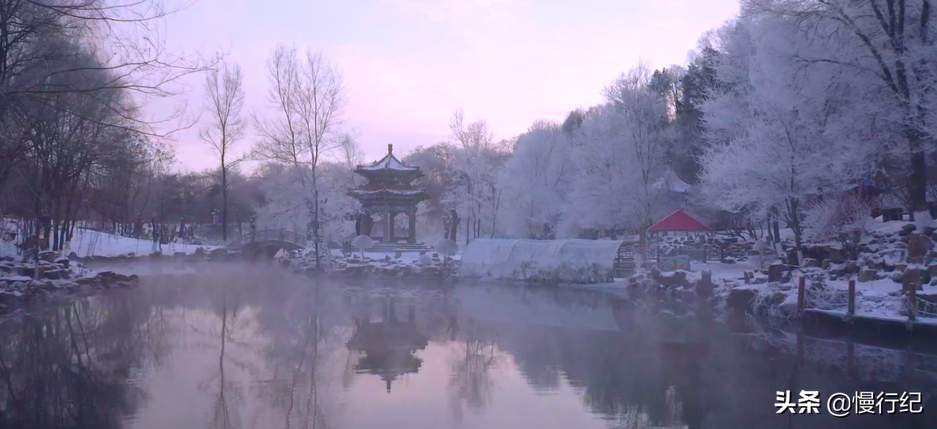 每到冬季,本溪水洞雾凇是本溪冬季旅游资源中独特的景观,由于洞内流出的水水温明显高于室外的温度,在洞前面的湖内会蒸腾出水汽,凝结在湖边的树上,就会出现“千朵万朵梨花开”的雾凇奇观。