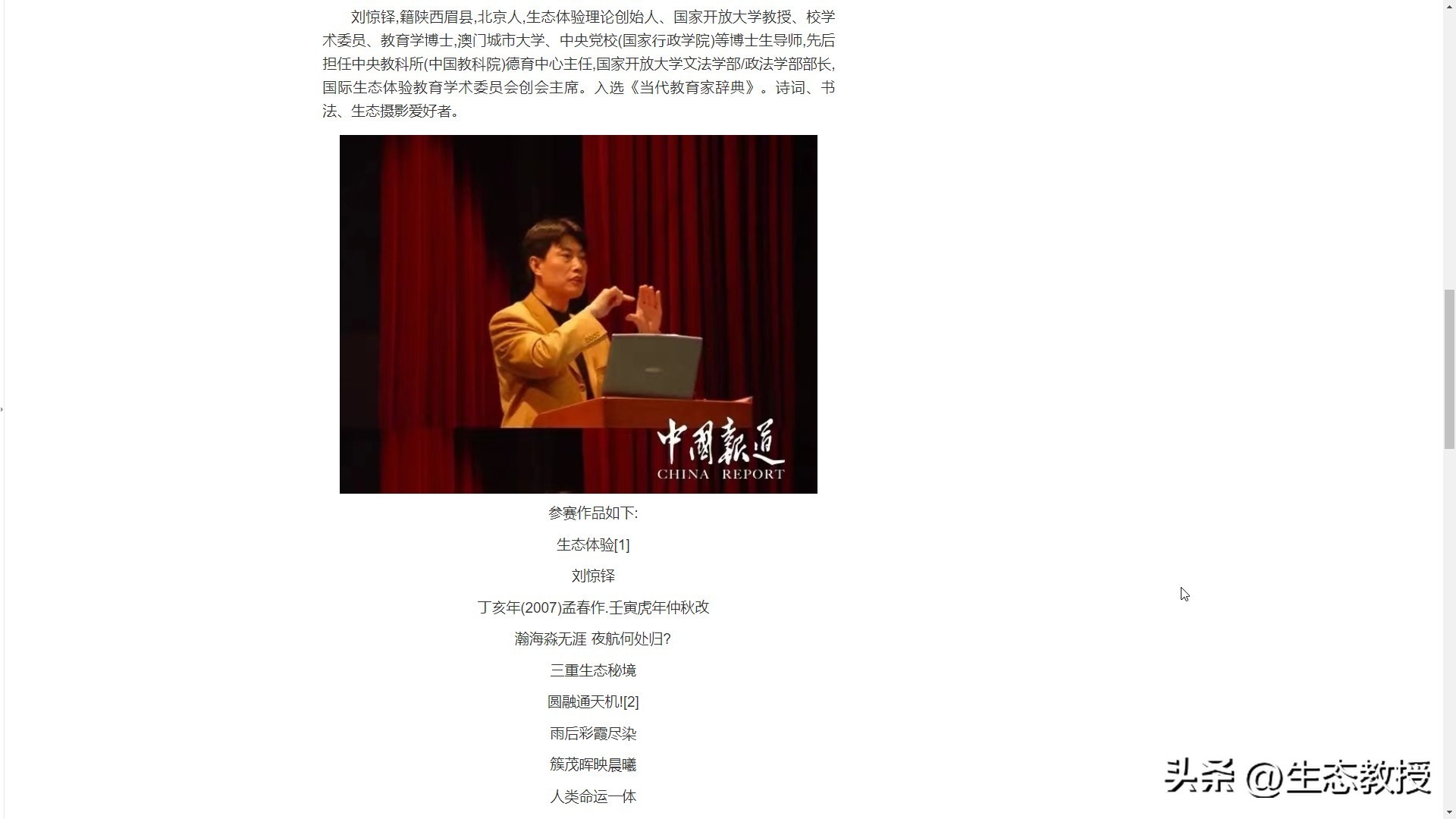 经过几轮比赛、公投,最终,生态体验理论创始人、国家开放大学教授、博士生导师、生态科学院院长刘惊铎获得决赛冠军。