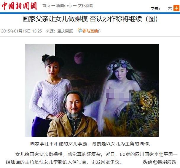 因为太过震撼,很快网络上就出现了“李壮平用女儿做裸模”的相关新闻。