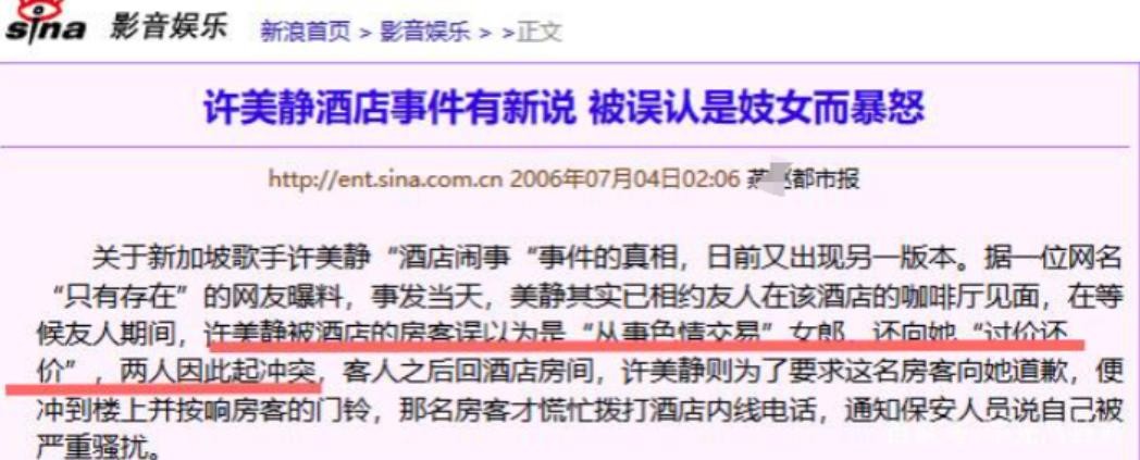 2000年代中期,一次酒店事件让许美静的公众形象遭受重创。