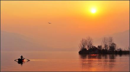 最后,借用诗人余亚飞《咏鄱阳湖组诗》之一《渔舟唱晚》:“水畔暮山衔夕阳,归舟返棹沐霞光;渔歌阵阵相呼应,声响调高传远方。”的诗句来结束全文。