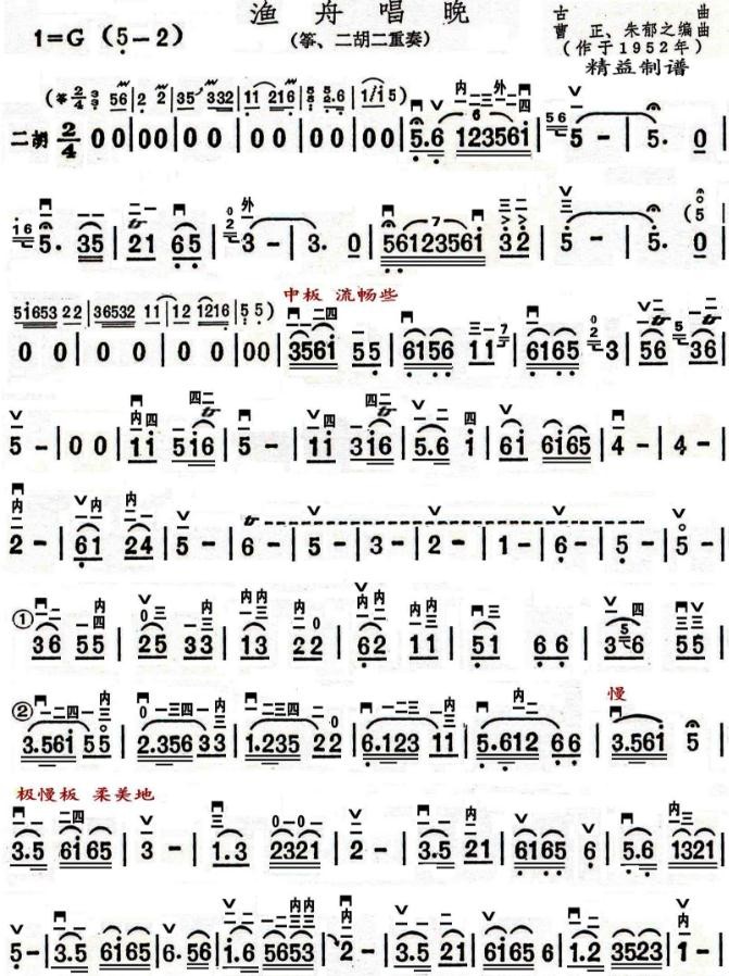 《渔舟唱晚》一曲的古筝版旋律优美动听,而改编成高胡、二胡、小提琴等弦乐器的版本,因旋律的线条更连贯、明晰,因此,让人聆赏后感觉有另种韵味和美感。