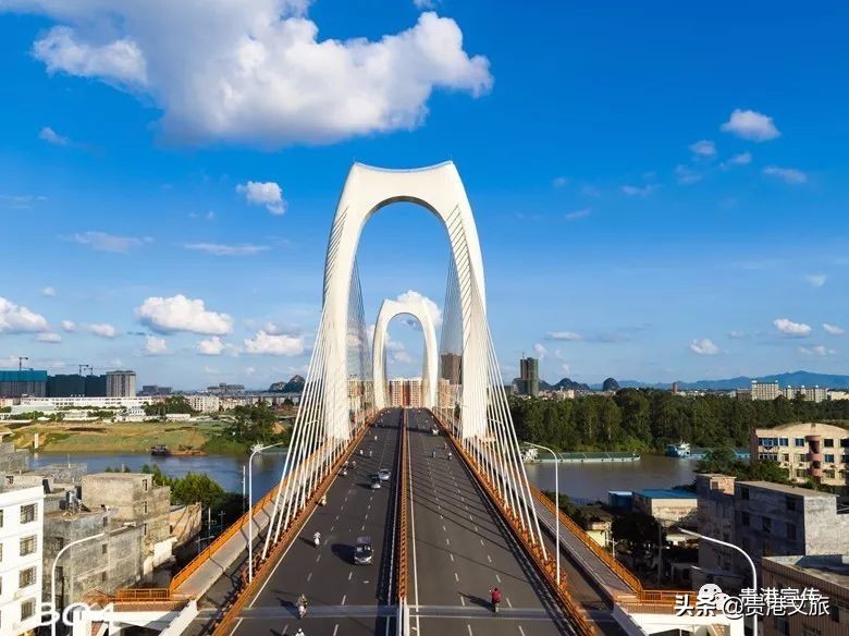 贵港青云大桥是亚洲首座双塔双索面预应力混凝土边主梁斜拉桥,大桥全长1280米,主桥长548米,设计为双向6车道。