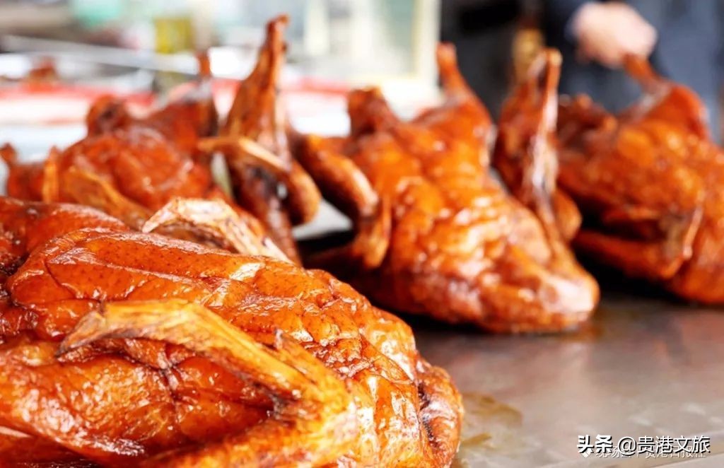 港南区瓦塘镇香江村的香江烧鸭鸭肉皮脆骨酥、肉质细嫩、肥而不腻、瘦而不柴,蘸料香气扑鼻、甜酸适中、味道醇厚、回味无穷。
