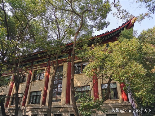 红柱青瓦掩映在绿树丛中,水池假山在旁边映衬,行走在校园里面,你真的不觉得这是一所大学的校园,倒像是一个充满了古典韵味的庄园,校园里面古色古香的建筑以及美不胜收的画面让你仿若穿越到了一百年前的民国时代……