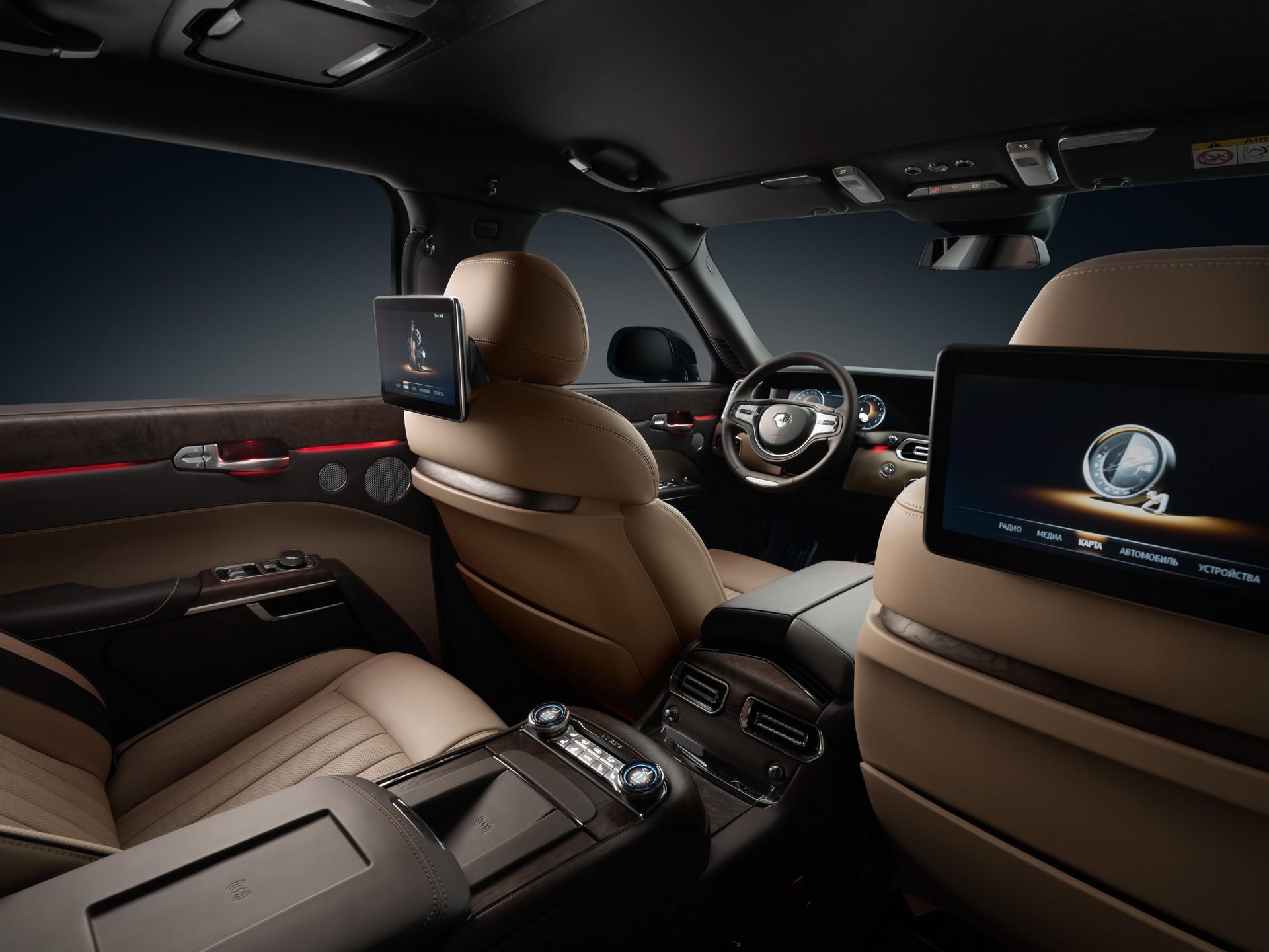双层车窗玻璃、最大可达22英寸的轮毂,尾部方形排气口、电动尾门和突出的下翼板组成的外观处处诠释Aurus Komendant顶级的气质。