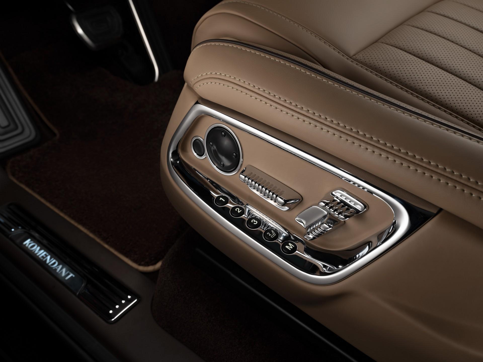 粗看有着相似的外观,Komendant巨大的22个前格栅有不输劳斯莱斯的霸气,LED大灯和同样巨大的进气口组成的前脸气场不输地球上任何汽车品牌。