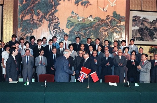 同年12月18日,撒切尔夫人再次抵达北京,对《联合声明》进行签署,表明香港在1997年将回归到祖国的怀抱。