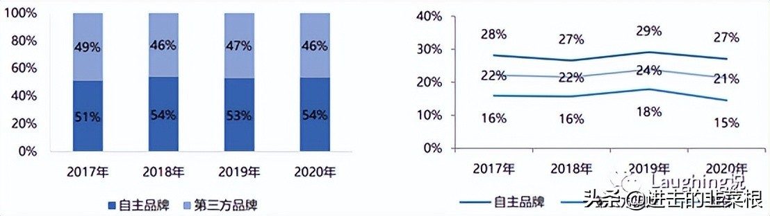 从商业模式来看,公司自主品牌自2016年始终贡献超50%的收入及近70%利润,是公司产品端核心竞争力。拥有更多自主品牌的同时研发费用率偏低,显示出公司代理商业模式缩短成长曲线、提高议价能力的特点。