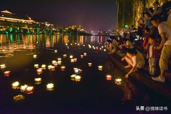 而道教的中元节传说,说是到了农历七月十五这一天,地官会开鬼门关,让阴间的鬼魂到人间找吃的。这跟鬼月的概念是不是很像?道教这种说法还产生了一些民俗,起到了安慰和引导孤魂野鬼的作用,让他们踏踏实实回老家,不要在人间闯祸。而这一天,刚立秋,白天热,晚上会凉快一点,尤其是路边、河边这些地方。人们出门烧纸钱、放河灯等,既能祭祀鬼,又能避暑乘凉,日期上、内容上也与盂兰盆节差不多,渐渐地,就和中元节合体了。