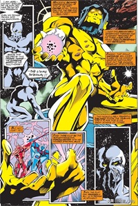 在图像小说《新新无限三部曲》中,在未来自己的操纵下,灭霸获得了强大的神器“星体控制器(Astral Regulator)”,星体控制器是AAO保持多元宇宙中不同宇宙的调节器。所有生物碰到星体控制器都会死亡,但是灭霸“存在于规则之外”。未来灭霸利用星体控制器吸收了几乎所有的抽象实体,包括生命法庭,最终连至高存在AAO也被灭霸吸收并取代。