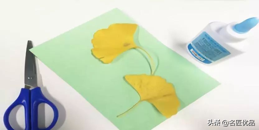 准备材料:不同形状的树叶、卡纸、胶水、透明胶带
