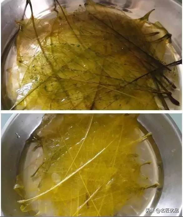 剩下的叶子继续煮,分别煮到10分钟和15分钟,就可以看出叶子的区别。