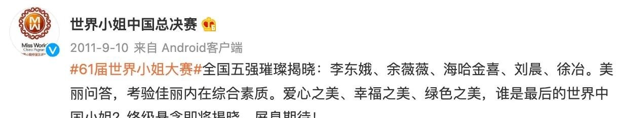 21岁时,她再次踏上选美舞台,虽然获得了中国区超模赛的冠军,但在总决赛中却遗憾止步前五。